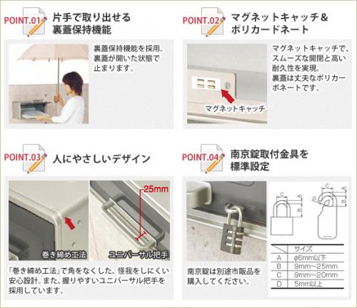 ポストの材質に丈夫なFRPを採用しています