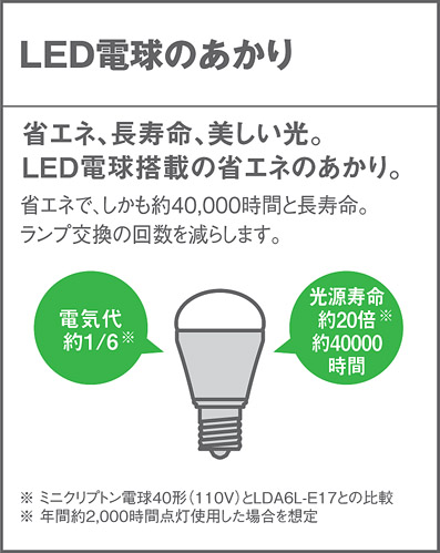 電球はLEDを使用しているので、長寿命で電気代もお安くなります