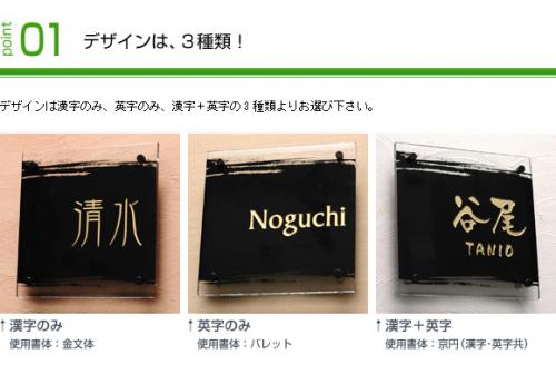 デザインは漢字のみ、英字のみ、漢字+英字の3種類よりお選びいただけます