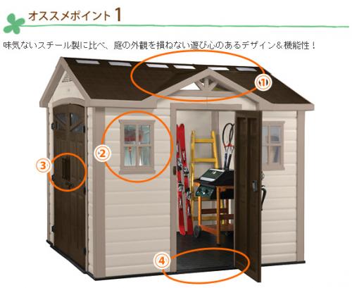 シンプルなデザインではなく、もっとかわいらしい物置を置いて、