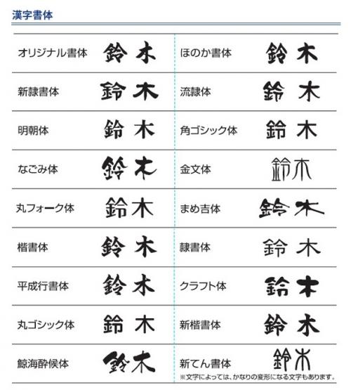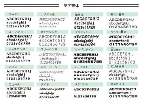 漢字書体、英字書体も 豊富な書体の中からお選び頂けます。