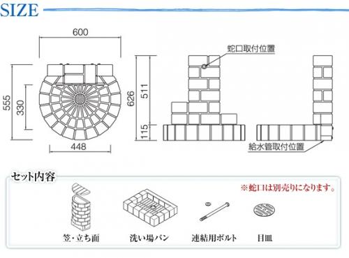 立水栓ユニットの寸法とセット内容図は、以下の通り