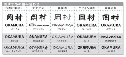 一例としまして、漢字、英字の人気書体をご案内いたします。