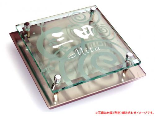 こちらのガラス表札BIRTH、別売りの専用台座と組み合わせることも可能です