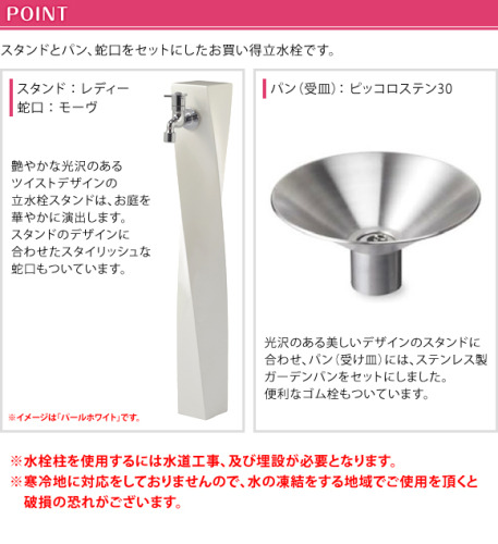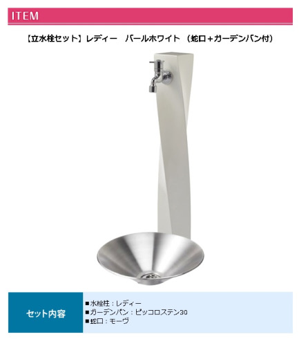 本日は立水栓セット レディー パールホワイト (蛇口+ガーデンパン付)をご紹介致します