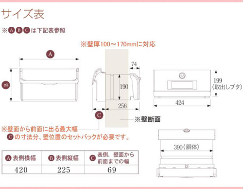 壁掛けのデザイン性と埋め込みポストの収納力を兼ね備えたポストです。