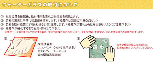 ウォーターガラス表札は接着剤での取り付けとなりますので