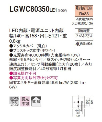 LEDブラケットライト LGWC80350LE12018/04/26(木)