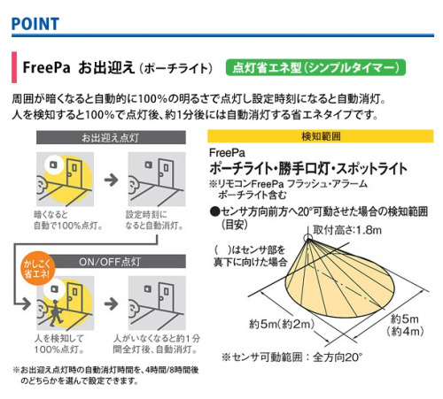FreePaお出迎え点灯(点灯省エネ型)シンプルタイマーは、周囲が暗くなると