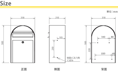 ※鍵穴は、ポストの右側になります。
