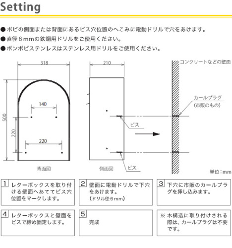 取付は壁面へボルトを差し込んで
