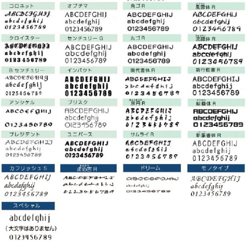 書体は以下一覧よりご選択いただけます