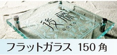 150mm×150mmの透明フラットガラスに文字を彫り込み仕上げたガラス表札。