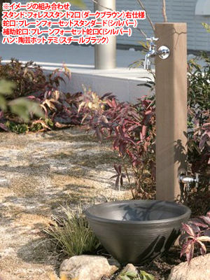 立水栓セット フォレススタンド ダークブラウン(蛇口2個+ポット付属)