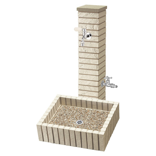 天然石調デザインがお庭に馴染む 立水栓セット フレウス ストーンブリック ナチュラルホワイト(パン+蛇口2個付属)2020/01/21(火)