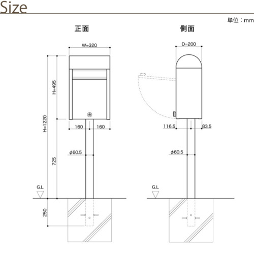 ポールと郵便ポストのセットとなっており、独立設置をお考えの方にピッタリです
