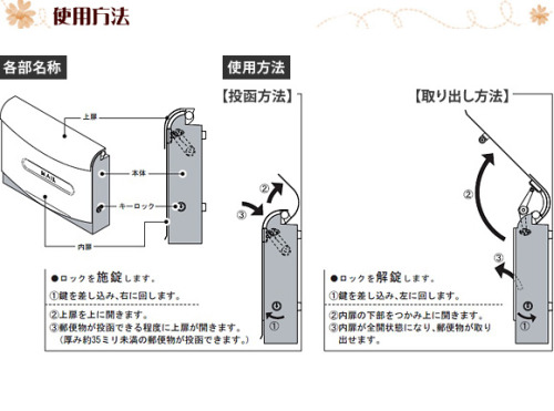 《投函は ポスト 上部》 から 《取り出しは 前扉》 から