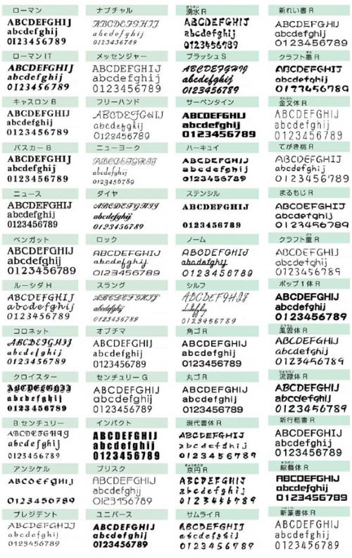 書体は漢字書体が28種類以上、英字書体が50種類以上からご選択頂けます