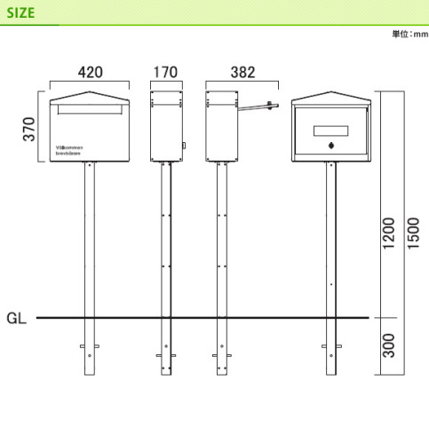 長方形の上に半円を加えたフォルムのフィンランド(ボビ社)のポストです。