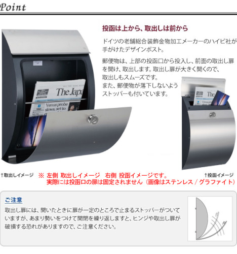 背面の取出し口は、郵便物を取出しやすくするために、