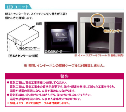 20mm以上壁面より浮いた表札用のライトとなりますが、