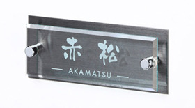 アクリルプレートとステンレス台座を組み合わせたアクリル表札です