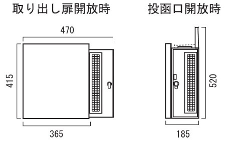 側面の取り出し口にはポストの中身がご確認頂ける“のぞき窓”と