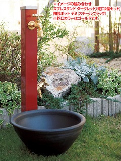 【立水栓セット】 スプレスタンド チョコブラウン (ポット+蛇口2個付属)★すてきなお庭におすすめ立水栓♪2021/10/05(火)
