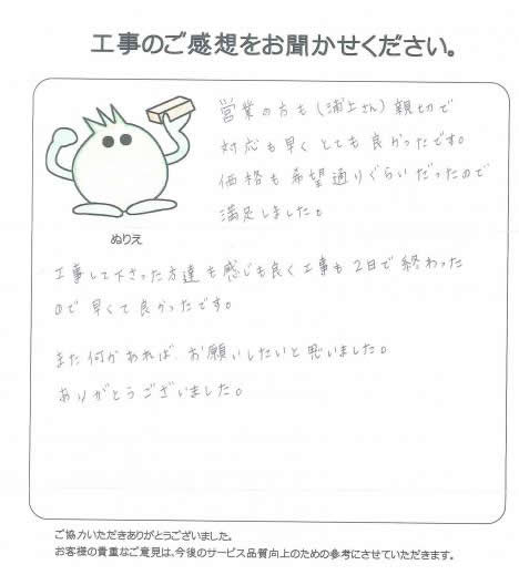 営業の方も(浦上さん)親切で対応も早くとても良かったです。