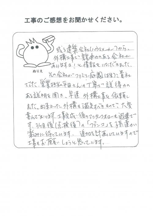 出来上がった外構も満足すべきもので、大変喜んでおります。