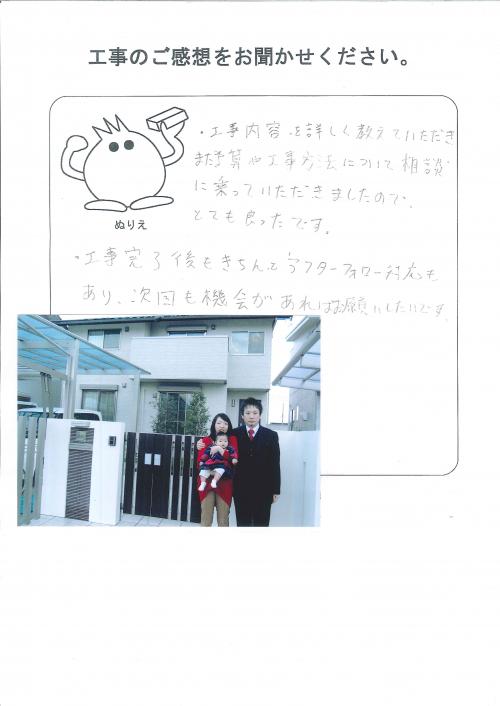 ・工事完了後もきちんとアフターフォロー対応もあり、次回も機会があればお願いしたいです。