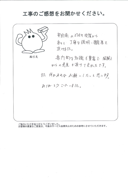 奈良県生駒市 O様 ご意見・ご感想ありがとうございました。