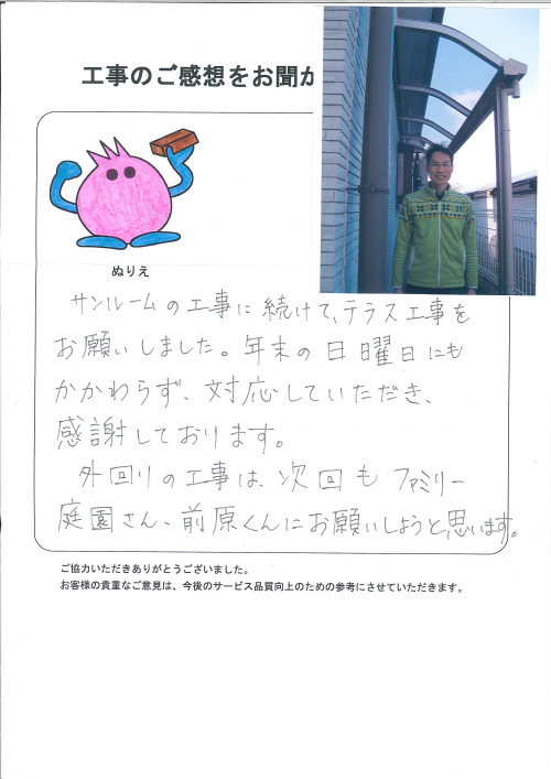 大阪府阪南市 M様 ご意見・ご感想ありがとうございました。