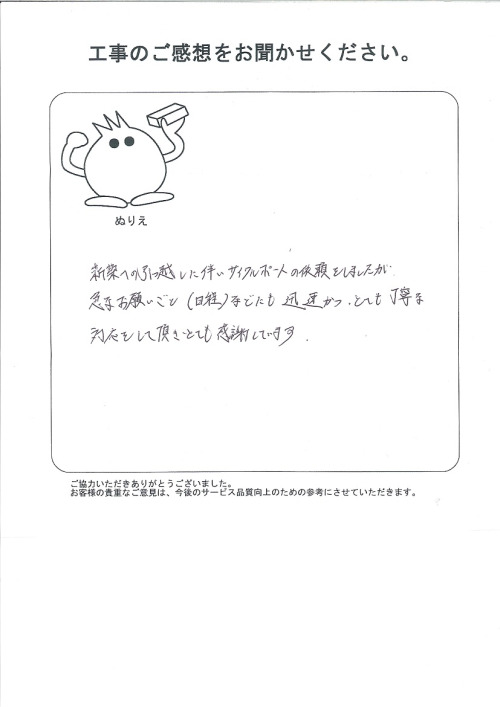 大阪府吹田市 I様 ご意見・ご感想ありがとうございました。