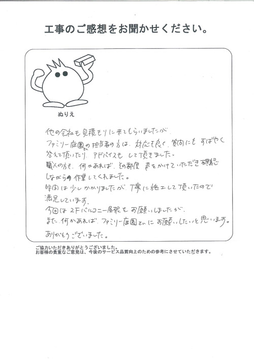 大阪府門真市 T様 ご意見・ご感想ありがとうございました。