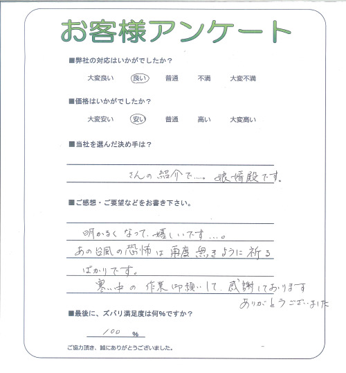 大阪府枚方市 N様 ご意見・ご感想ありがとうございました。