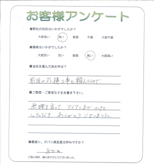 大阪府堺市北区 K様 ご意見・ご感想ありがとうございました。