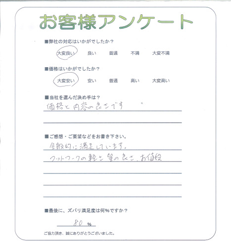 大阪府高槻市 S様 ご意見・ご感想ありがとうございました。