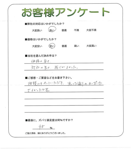 兵庫県宝塚市 K様 ご意見・ご感想ありがとうございました。