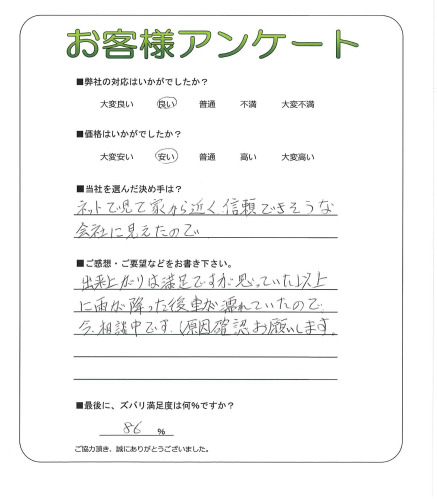 大阪府和泉市 H様 ご意見・ご感想ありがとうございました。