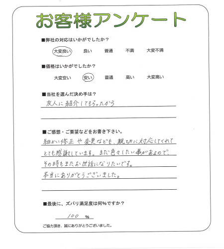 奈良県葛城市 K様 ご意見・ご感想ありがとうございました。