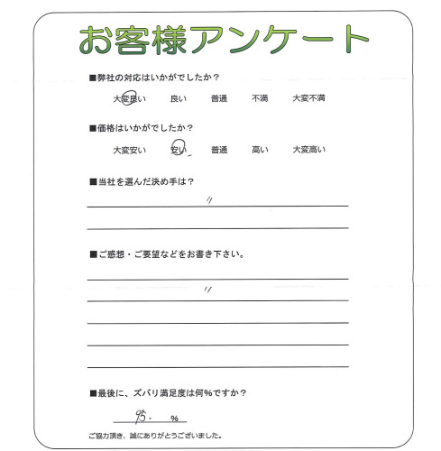 滋賀県草津市 Y様 ご意見・ご感想ありがとうございました。