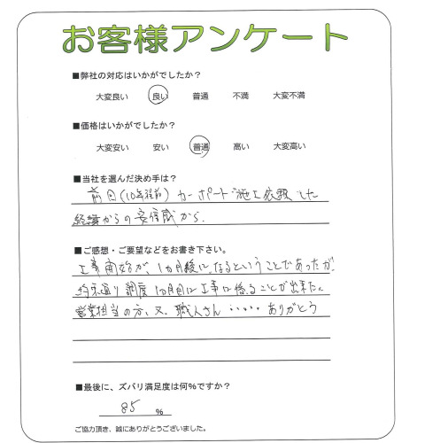 大阪府大阪市住之江区 N様 ご意見・ご感想ありがとうございました。