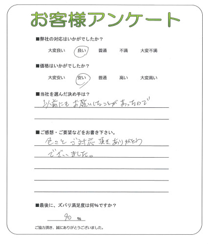 大阪府東大阪市 O様 ご意見・ご感想ありがとうございました。